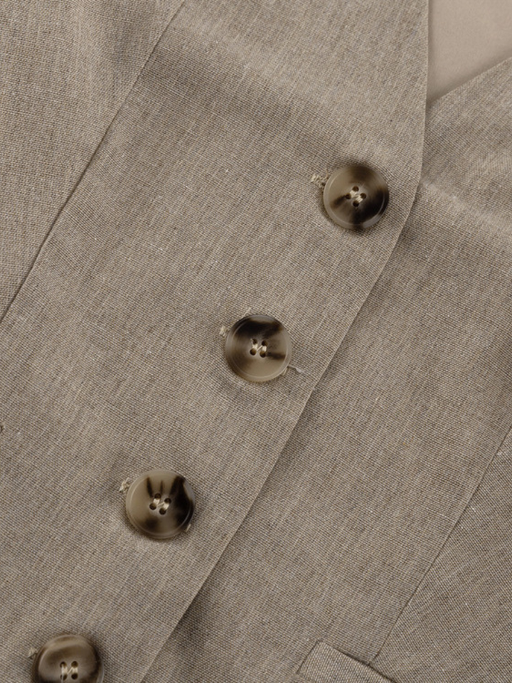 Cotton Three Pieces Waistcoat with Cami Top Midi Skirt Set