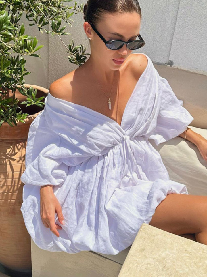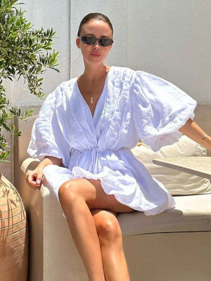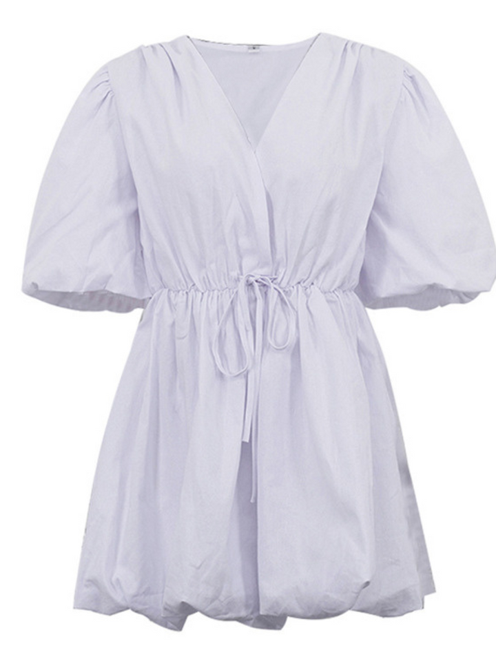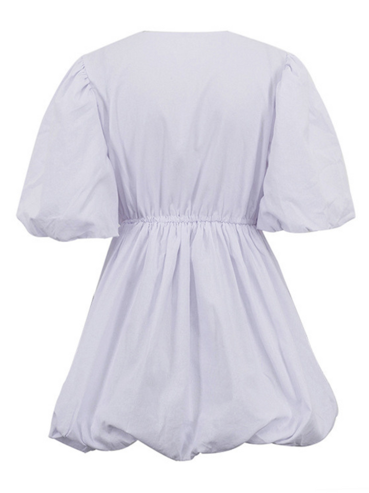 Pure Cotton Half Sleeve Puff Hem Short Dress